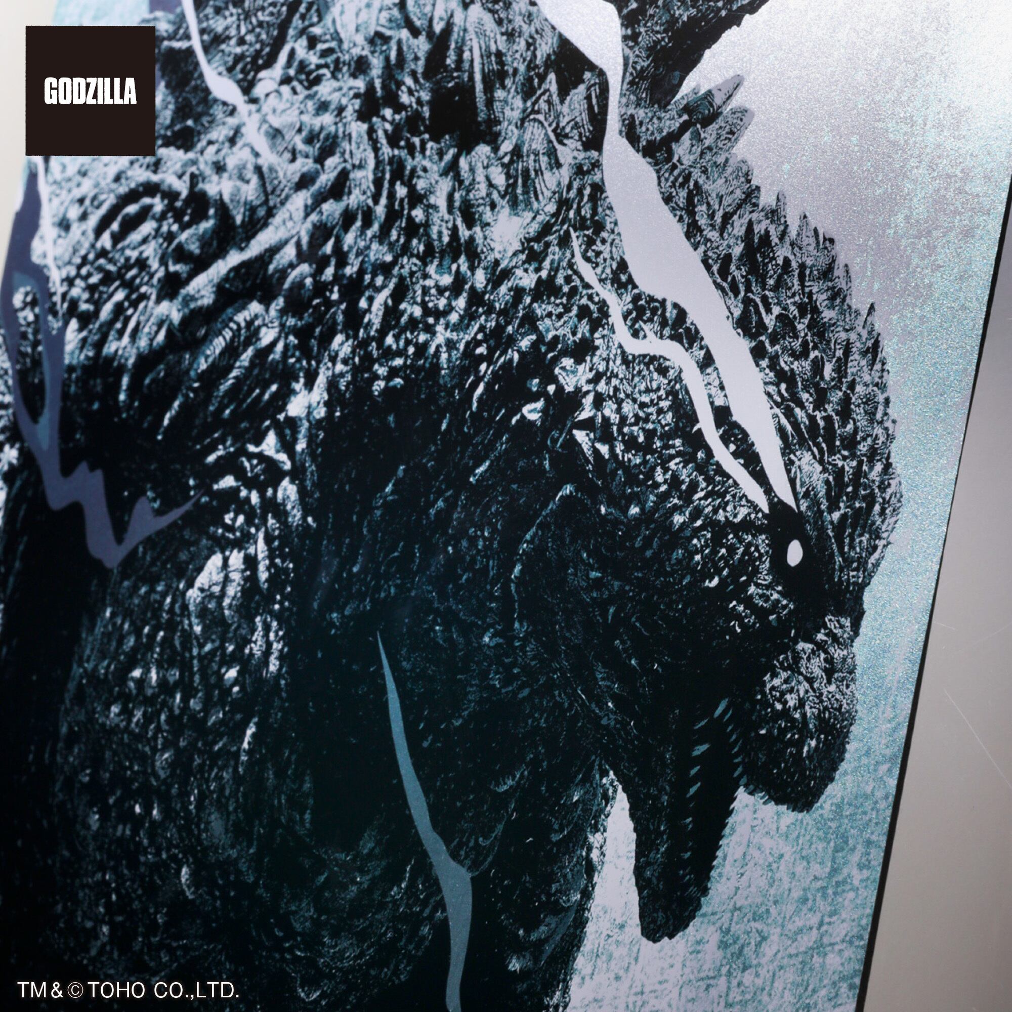 箔印刷(インラインフォイルシステム)によるプレミアムポスター。劇場公開時のポスターが持つ圧倒的なビジュアルはそのままに、箔と擬似エンボスでスペシャリティな輝きをプラス。あなたのお部屋で最高級の輝きと存在感を放ちます。各セットごとに、このポスターだけの特別な解説書付き。全世界のゴジラファン垂涎のプレミアム映画ポスターです。各セット2枚入り。